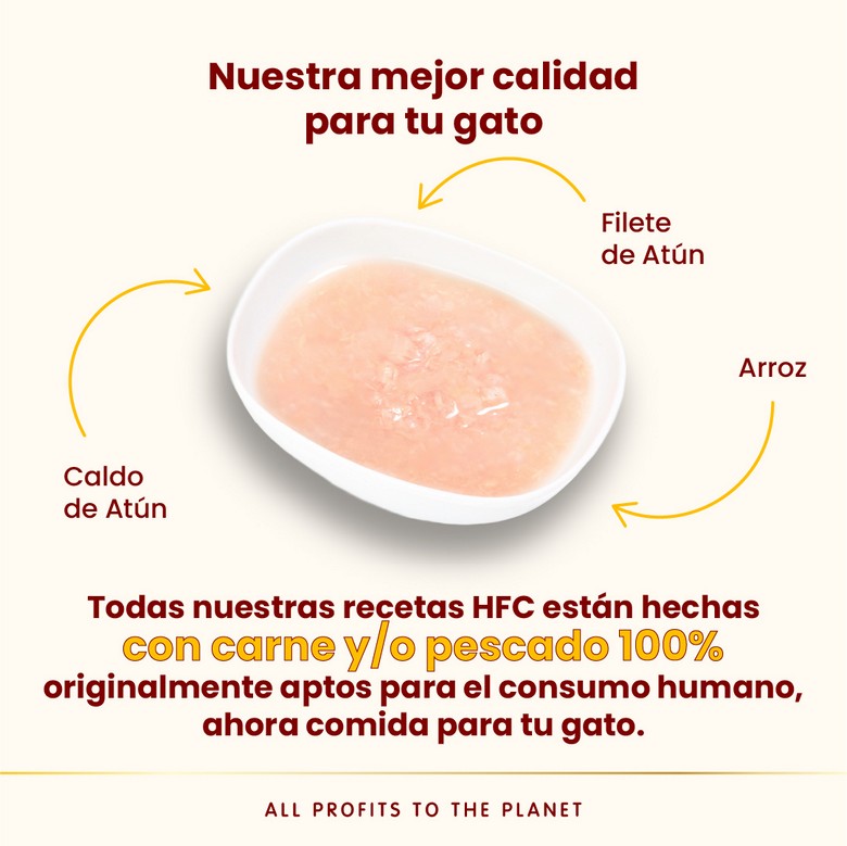Ingredientes: Caldo de atún 73.5%, filete de atún 25%, arroz 1.5%
