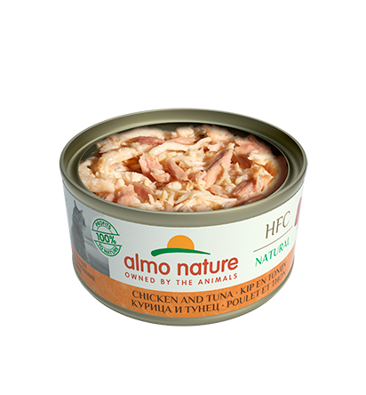 La comida húmeda Almo Nature HFC está elaborado con ingredientes originalmente aptos para el consumo humano y posteriormente utilizados como alimento para gatos. En nuestras recetas HFC no utilizamos harinas ni carne deshidratada, y la carne y el pescado que incluye es la mismos que podrías elegir para ti mismo.